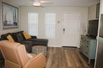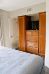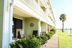 Condo 123 is located on the first floor at the south end of the Kontiki Beach Resort facility. It is located nearest the pool and its bay windows overlook the cabana and pool. The bedroom holds a king bed and there is a queen size sleeper sofa in the liviing area. The bathroom features a walk-in shower. No pets allowed.