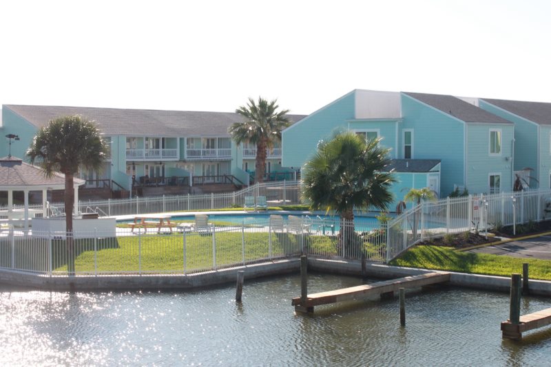 This two-bedroom condominium is located in the Key Allegro area in Rockport and accommodates a maximum of six people. Visitors have access to two community swimming pools. There is also boat docking available in the canal behind the unit. Boats can access the Rockport ski basin and Rockport beach area from the water, or visitors can drive around a short distance to the beach park entrance. Downtown Rockport which features souvenir and boutique shopping, as well as a restaurant, a winery, and art galleries is also less than a mile away.
